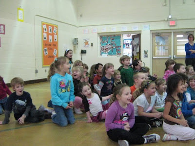 Today in music class we watched a puppet show of the Carnival of Animals which featured music composed by Camille Saint-Saens. This music is fondly known as "classical music for kids". The kiddos loved hearing music and seeing the animals that it represented.
